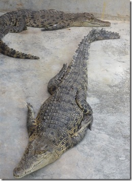 (左)在泥土(右)在走廊下休息的鳄鱼。。。